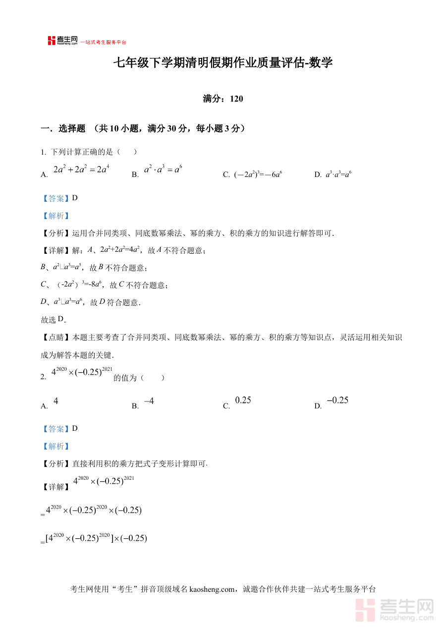 《精品解析:辽宁省沈阳市第一二七中学2024-2025学年七年级下学期第一次数学月考试卷(解析版)》是针对辽宁省沈阳市第一二七中学2024-2025学年七年级下学期首次数学月度测试的配套解析类备考资料,聚焦该阶段数学学科的阶段性考查需求,为使用者提供与校内考试直接相关的参考依据。