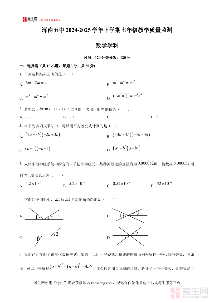 《精品解析:辽宁省沈阳市浑南区第五初级中学2024-2025学年七年级下学期第一次月考数学试卷(原卷版)》是针对辽宁省沈阳市浑南区第五初级中学2024-2025学年七年级下学期数学学科第一次月考的配套备考资料,精准匹配该校该阶段数学教学进度与阶段性考查目标,为相关主体提供贴合实际的参考依据。