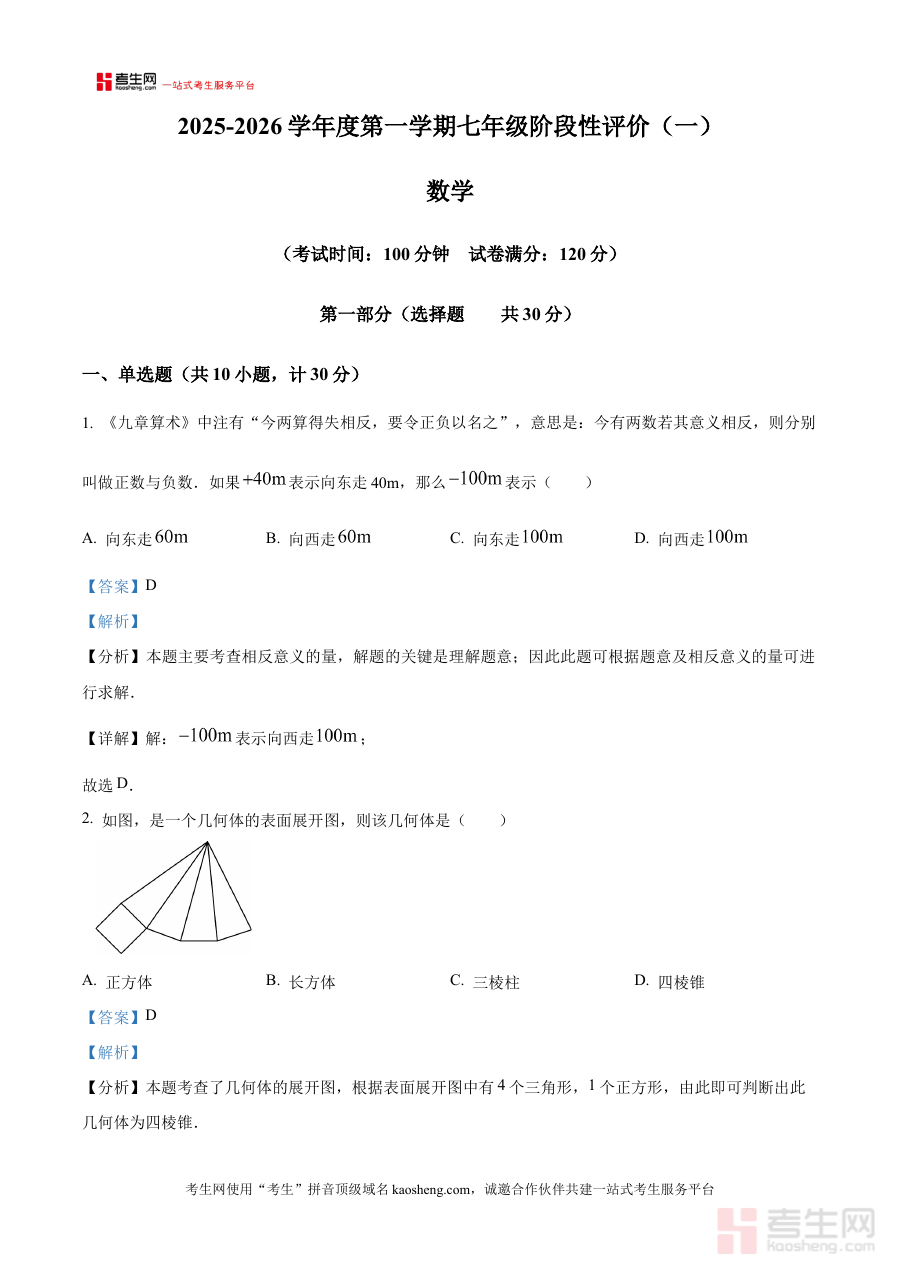《精品解析:陕西省西安市曲江第二学校2025-2026学年上学期七年级第一次月考数学试卷(解析版)》是针对陕西省西安市曲江第二学校2025-2026学年上学期七年级学生开展的第一次月考数学科目的专项备考资料,聚焦该阶段数学学习的阶段性考查需求,为使用者提供与本次考试直接相关的解析支持,是适配该学校特定学年学期数学月考的针对性资料。