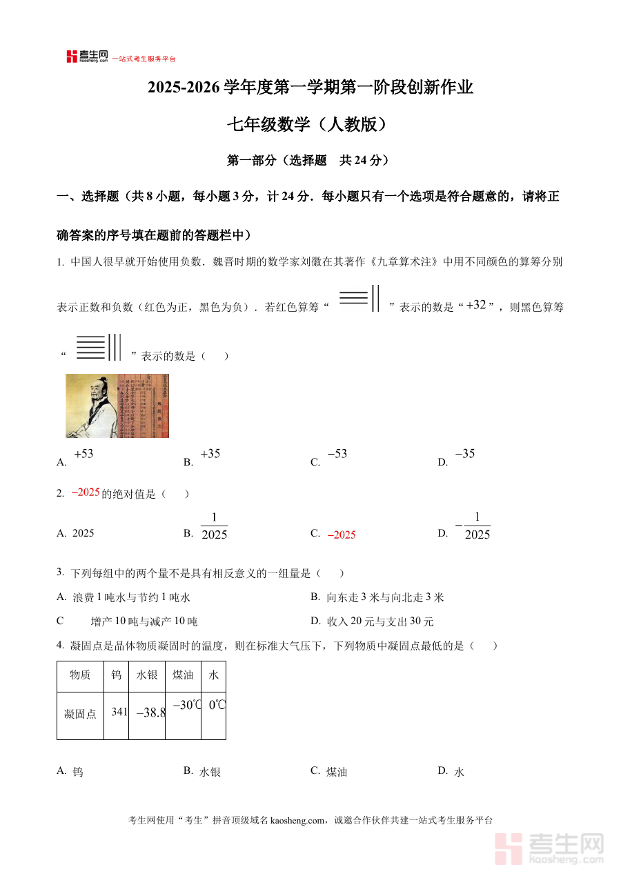 《精品解析:陕西省西安市灞桥初级中学2025-2026学年七年级上学期月考数学试卷 (原卷版)》是针对陕西省西安市灞桥初级中学特定学年学期的数学月度考试资料。该资料聚焦2025至2026学年七年级上学期的阶段性数学检测需求,精准匹配该校七年级学生的月度学习评估场景,作为原卷版资料,它完整保留了该次月考数学试卷的原始呈现形式与结构框架,为相关使用者提供了贴近实际考试情境的备考支撑与参考依据。