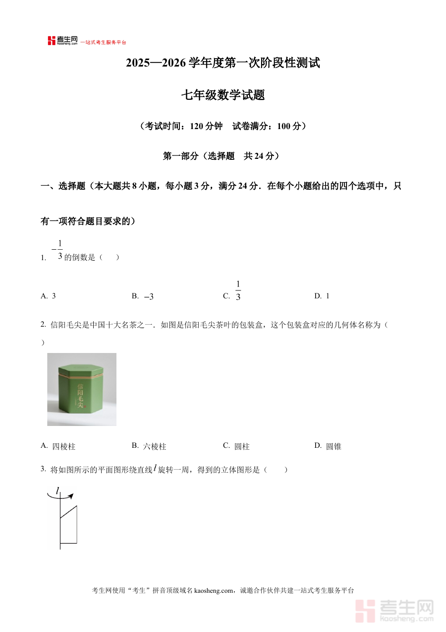 《精品解析:陕西省西安市西咸新区空港实验学校2025-2026学年七年级上学期第一次阶段性测试数学试卷(原卷版)》是针对陕西省西安市西咸新区空港实验学校特定学年及学段的数学阶段性测试资料。该资料对应2025-2026学年七年级上学期第一次阶段性测试场景,贴合该校教学进度与考查方向,为相关使用者提供了与实际测试一致的原卷内容,是七年级上学期数学阶段学习的针对性备考参考材料。