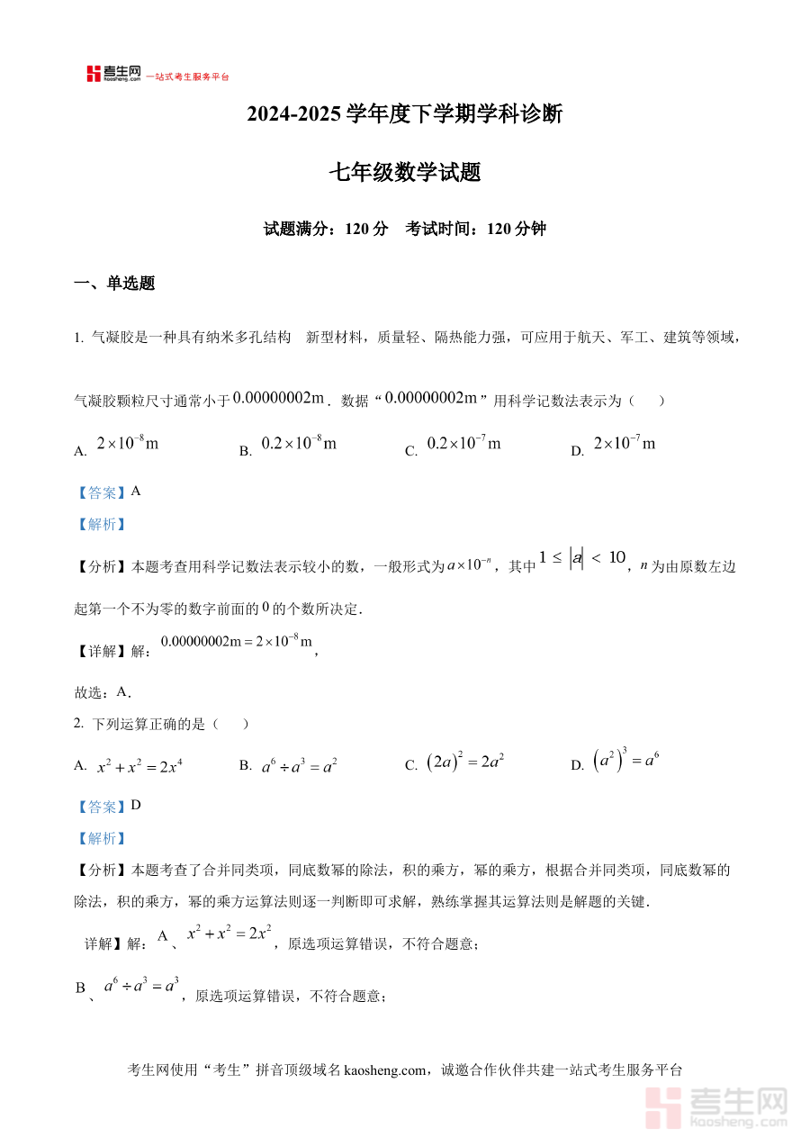 《精品解析:辽宁省沈阳市第一八四中学2024-2025学年 七年级下学期数学学科诊断(第一、第二章) (解析版)》是面向辽宁省沈阳市第一八四中学2024-2025学年七年级下学期学生推出的数学学科阶段性诊断备考资料,聚焦该学期数学学科第一、第二章的核心内容。它紧密结合学校该学年的教学安排与进度,旨在为学生提供符合本校教学实际的阶段性学习检测工具,帮助师生及时掌握第一、第二章的学习效果,为后续学习与教学提供基础依据。