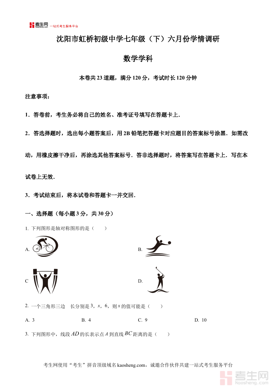 《精品解析:辽宁省沈阳市虹桥中学教育集团2024-2025学年下学期七年级6月月考数学试题(原卷版)》是针对辽宁省沈阳市虹桥中学教育集团2024-2025学年下学期七年级学生6月月考设计的数学学科备考资料,精准匹配该阶段考试的时间节点与学生年级特征,为相关教学与学习活动提供定向支持。