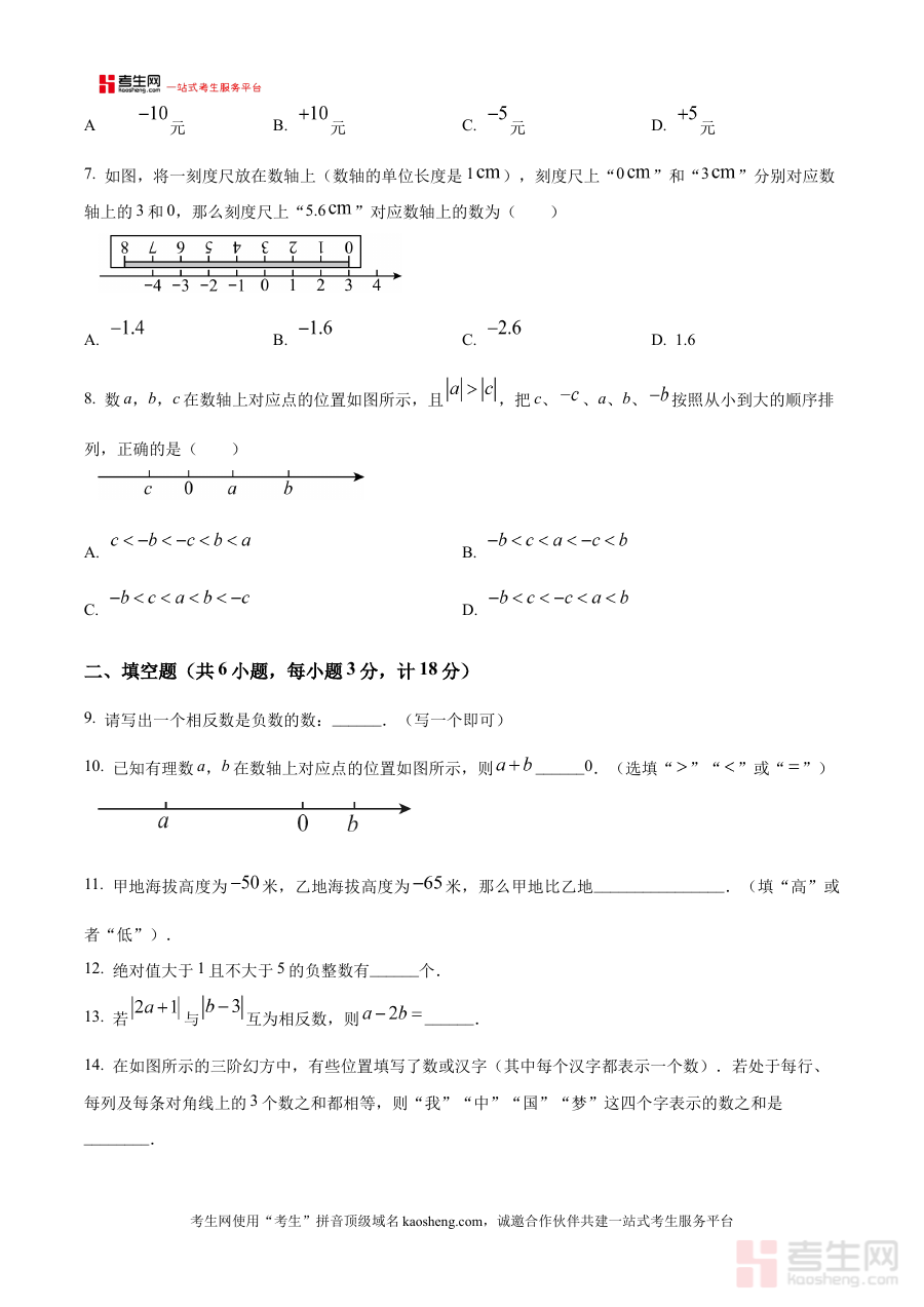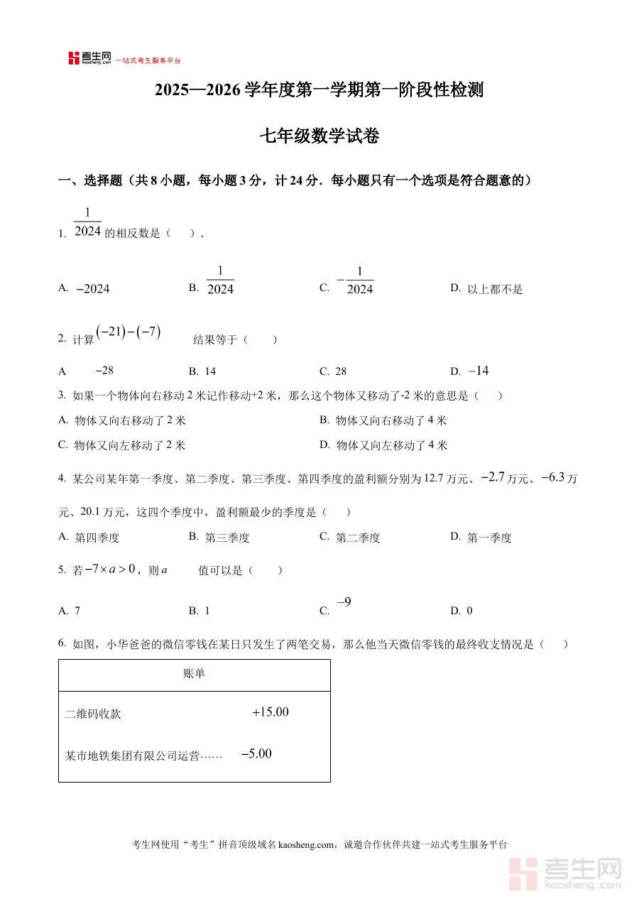 这份原卷版资料具备多维度的教学与学习辅助价值。对于学生而言,它可用于自我学情诊断,通过完成试题清晰认知自身在七年级上学期前半段数学知识掌握的薄弱环节;对于教师来说,它能作为阶段教学效果评估的参考材料,助力分析班级整体学习情况与知识漏洞;同时,它也为师生共同制定备考规划提供真实考试场景依据,让复习更具方向感与有效性。