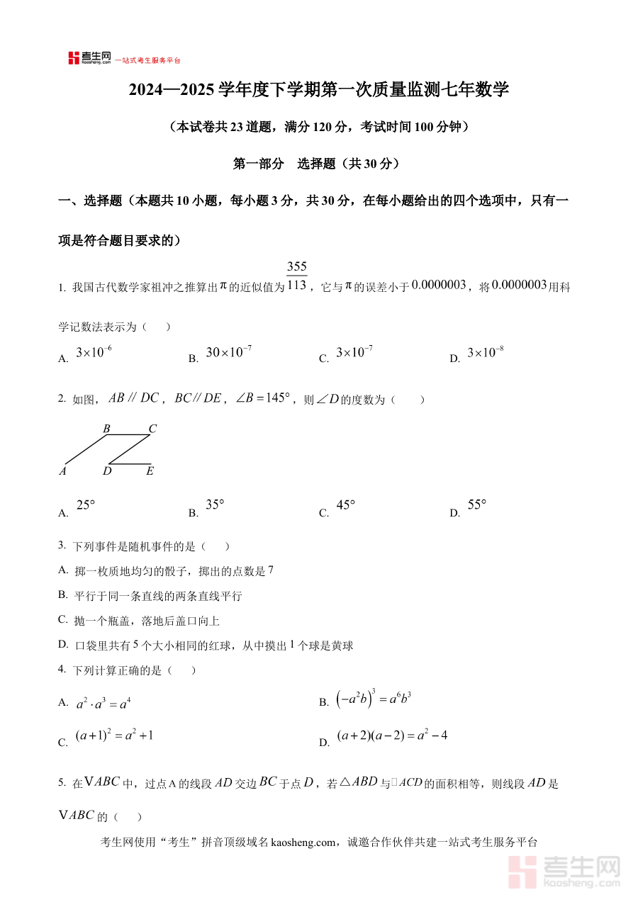《精品解析:辽宁省沈阳市铁西区2024—2025学年下学期七年级期中考试数学试题(原卷版)》是针对辽宁省沈阳市铁西区2024至2025学年下学期七年级数学期中考试设计的配套备考资料,精准贴合该地区该学年段的期中阶段性评价标准,为师生提供与本地教学进度及考试要求高度匹配的原卷内容参考。
