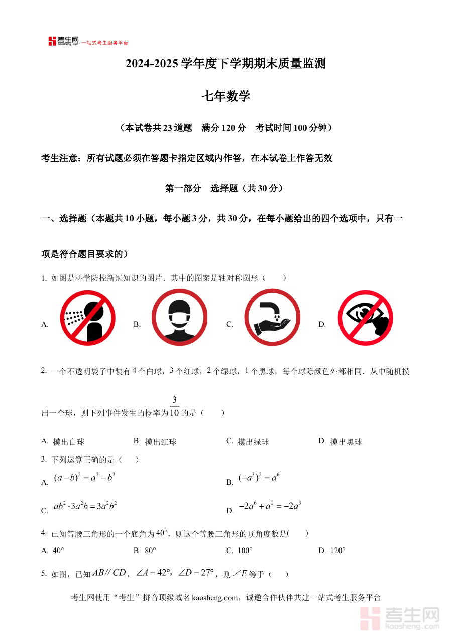《精品解析:辽宁省沈阳市铁西区2024-2025学年七年级下学期期末数学试题(原卷版)》是针对辽宁省沈阳市铁西区特定学年段七年级下学期期末数学考试的专业备考资料,精准对应该地区该学期的数学教学进度与考试要求,为使用者提供与实际期末考试高度契合的试题资源,是区域内七年级学生期末备考的重要参考材料。