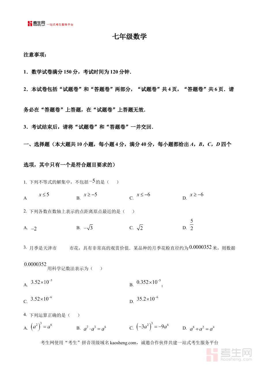 这份原卷版试题具备明确的阶段性使用价值:对于学生而言,可通过完成试题进行自我学情诊断,清晰识别自身在七年级下学期中期数学知识掌握中的薄弱环节;对于教师而言,能够借助试题结果开展教学效果评估,为后续调整教学策略、优化备考规划提供数据支撑。此外,备考该阶段月考的学生通过使用这份资料,可提前熟悉考试的整体结构与考查节奏,增强备考的针对性,有效提升应对正式考试的信心与能力。