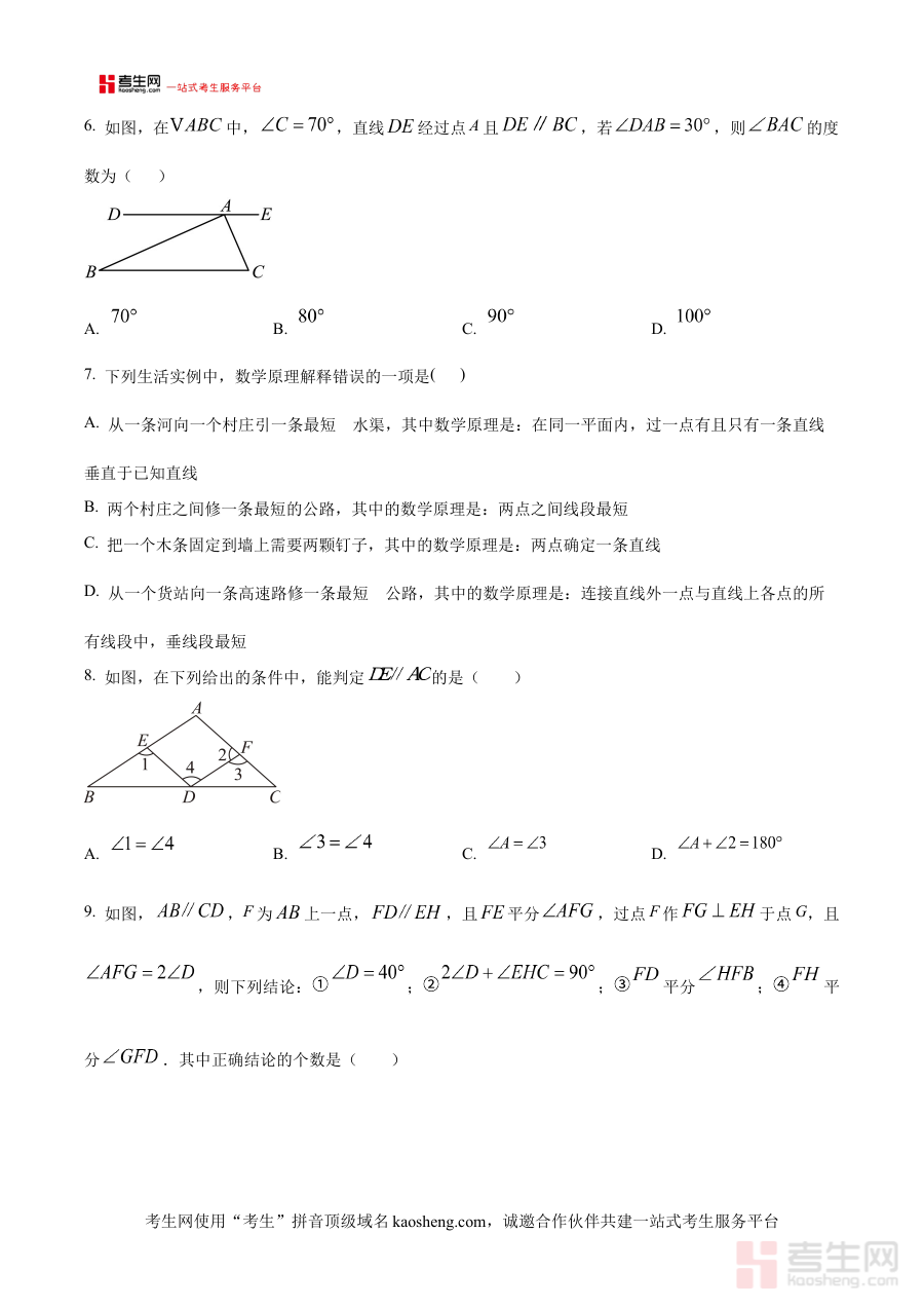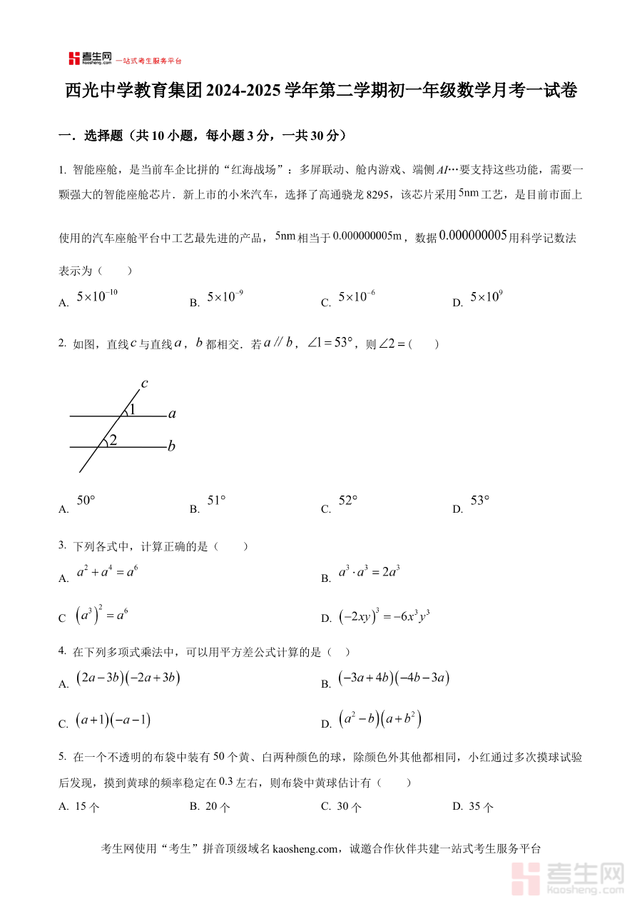《精品解析:陕西省 西安市西光中学2024-2025学年七年级下学期3月月考数学试题(原卷版)》是针对陕西省西安市西光中学特定学年学期数学学科阶段性考试的备考资料。该资料以原卷版形式呈现,完整保留了2024-2025学年七年级下学期3月月考数学试题的原始结构与考查框架,为使用者提供了贴近该校实际考试场景的参考素材。作为衔接学期中阶段学习与后续复习的重要载体,它能让使用者直观了解该学校七年级数学学科3月月考的考查方向与形式特点,为阶段性学习提供精准参考。