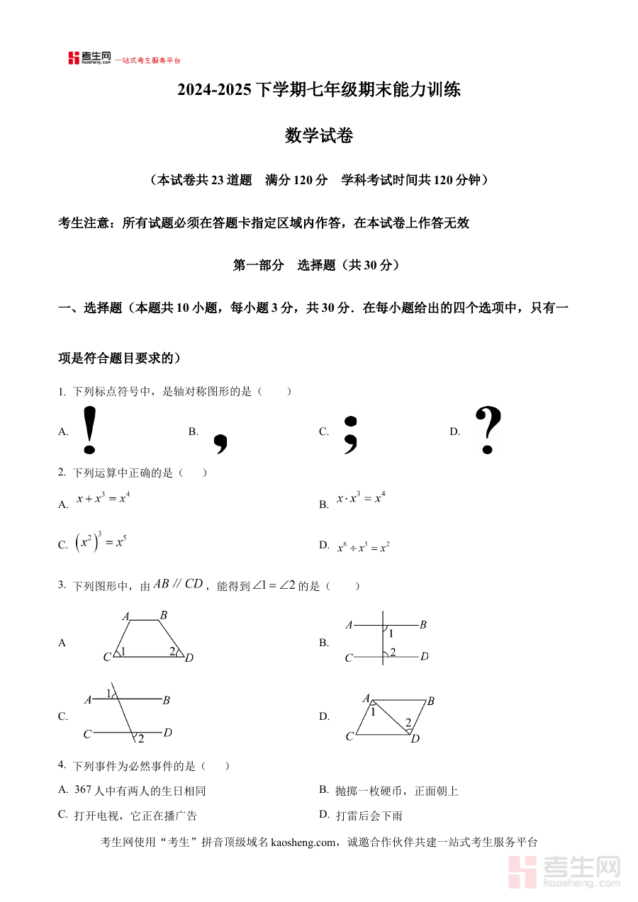《精品解析:辽宁省沈阳市皇姑区2024-2025学年下学期期末考试七年级数学试题(原卷版)》是针对辽宁省沈阳市皇姑区特定学年学期的数学学科期末考试资料,明确对应2024-2025学年下学期皇姑区七年级数学期末考,作为该阶段考试的原卷版本,为使用者提供与实际考试直接相关的备考依据,体现出区域化、阶段性的精准定位,是适配该区域七年级学生期末备考的重要资源。