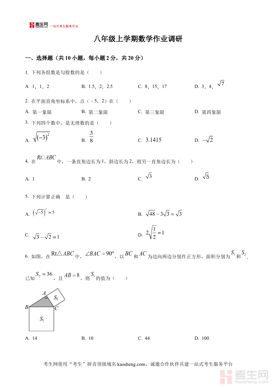 《精品解析:辽宁省沈阳市第七中学2024-2025学年八年级上学期10月月考数学试卷(原卷版)》是针对辽宁省沈阳市第七中学2024-2025学年八年级上学期10月数学月考设计的备考资料,精准匹配该阶段的考试时间与地域教学背景,为学生提供贴合实际考试场景的练习载体。