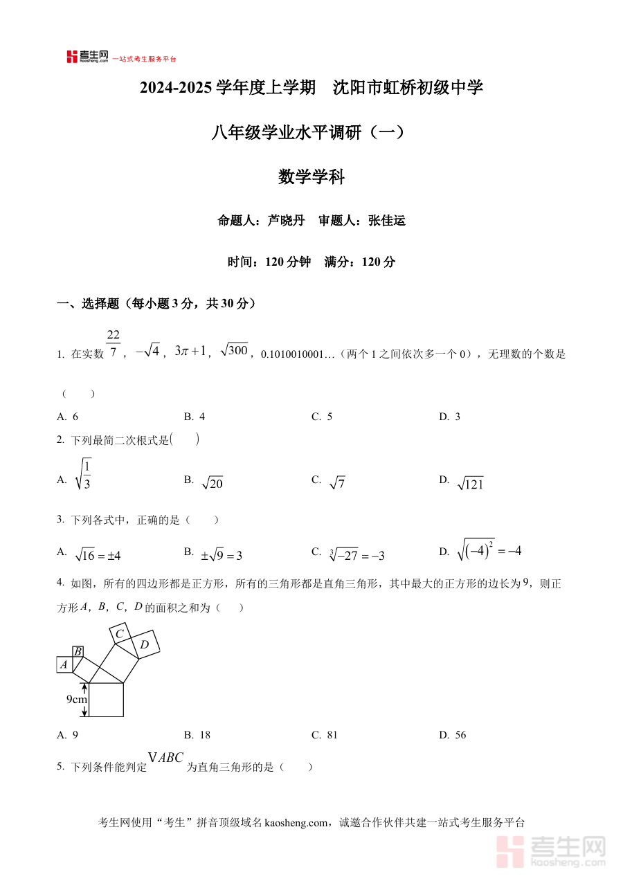 《精品解析:辽宁省沈阳市虹桥初级中学2024-2025学年八年级上学期10月月考数学试题 (原卷版)》是针对辽宁省沈阳市虹桥初级中学特定学年段与考试节点的数学学科备考资料,聚焦2024-2025学年八年级上学期10月月考这一阶段性测试场景,为相关师生提供贴合本地校考实际的原卷内容支持。