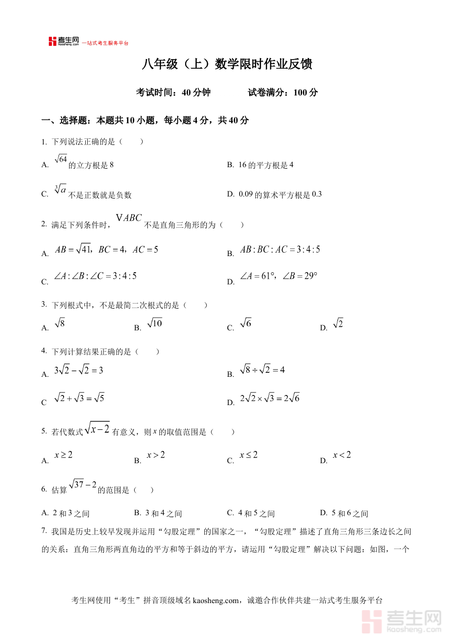 此资料适用于辽宁省沈阳市虹桥初级中学八年级学生、该校数学教师及关注学生数学学习的家长群体。对于学生,它是考前模拟与自我评估的重要资源;对于教师,可作为教学反馈与命题参考的素材;对于家长,则能辅助了解孩子的阶段学习状况。通过使用该资料,使用者可提升阶段检测与备考规划的效率,增强学习或教学的针对性与有效性。