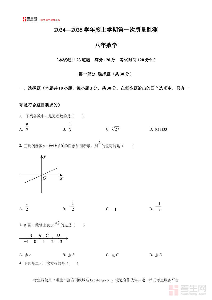 此资料主要适用于辽宁省沈阳市铁西区2024-2025学年在读的八年级学生、担任该年级数学教学的教师以及学生家长。作为第一次质量监测的原卷版资料,它能有效支持学生进行自我检测与知识巩固,帮助教师优化教学计划与辅导策略,也让家长更直观地掌握孩子在区域学习中的定位,为后续的学习规划与提升提供切实的参考依据。