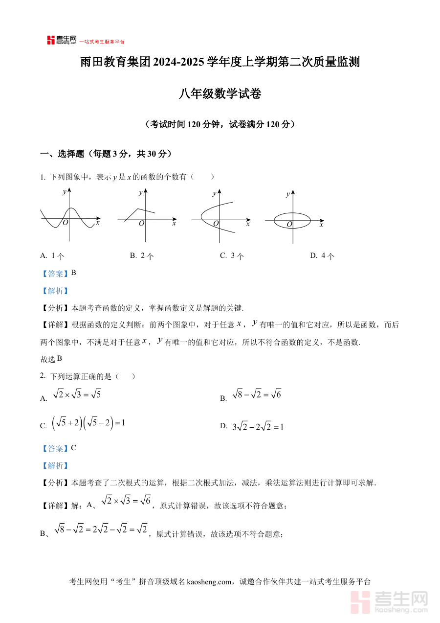 此资料适用于辽宁省沈阳市雨田实验中学2024-2025学年八年级学生,尤其适合需要进行阶段检测复盘、备考规划调整的学习者,其解析内容可帮助使用者深化对知识的理解与应用,有效提升应对同类阶段性考试的能力。