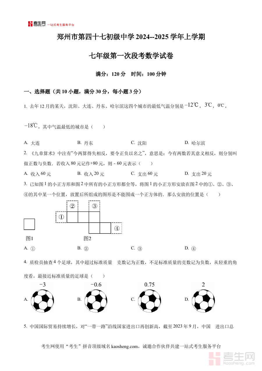 《精品解析:河南省郑州市第四十七初级中学2024-2025学年七年级上学期第一次段考数学试卷(原卷版)》是针对河南省郑州市第四十七初级中学2024-2025学年七年级上学期第一次段考的数学学科备考资料,贴合该学校该阶段的段考时间安排与区域教学实际,为相关使用者提供与真实考试场景一致的原卷内容参考。