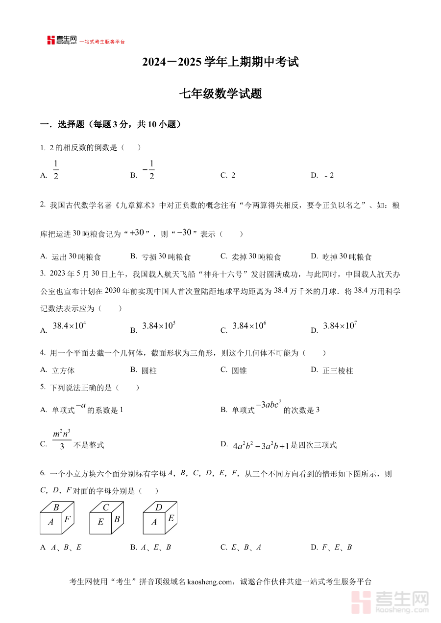 《精品解析:河南省郑州市二七区郑州四中教育集团期中考试2024-2025学年七年级上学期11月期中数学试题(原卷版)》是针对河南省郑州市二七区郑州四中教育集团在2024-2025学年七年级上学期11月举行的期中考试编制的数学学科备考资料,精准匹配该阶段期中检测需求,为学生提供贴合本地校际联考实际的练习资源。