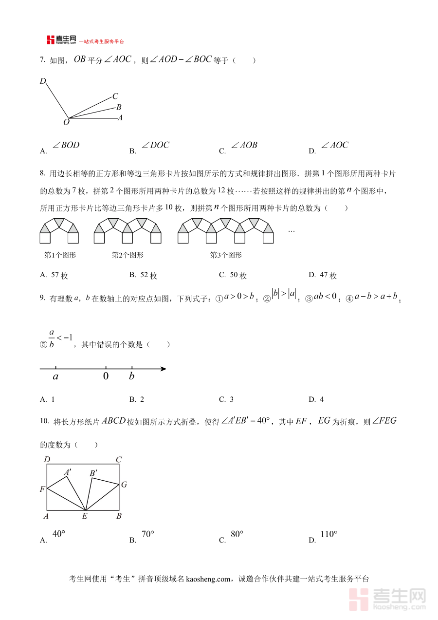 本资料适用于郑州四中教育集团及郑州市二七区范围内的七年级学生,以及从事初中数学教学的教师群体;作为期中阶段检测的原卷版资料,其价值在于帮助学生熟悉考试形式与节奏,教师可借助它开展针对性教学与复习指导,有效提升阶段备考效率与学习质量。