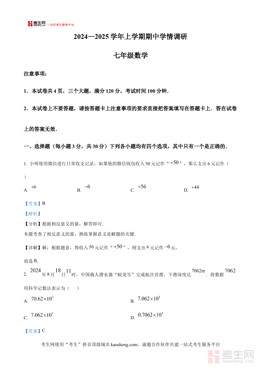 《精品解析:河南省郑州市登封嵩阳中学2024—2025学年七年级上学期期中考试数学试卷(解析版)》是专门针对河南省郑州市登封嵩阳中学在2024—2025学年七年级上学期开展的数学学科期中检测所打造的配套资料,精准对接该阶段期中考查的时间节点与学习内容范围,为该校师生提供了本次期中考试试卷的全面详细解析版本,是紧密贴合学校期中检测实际场景的高质量针对性备考资源。