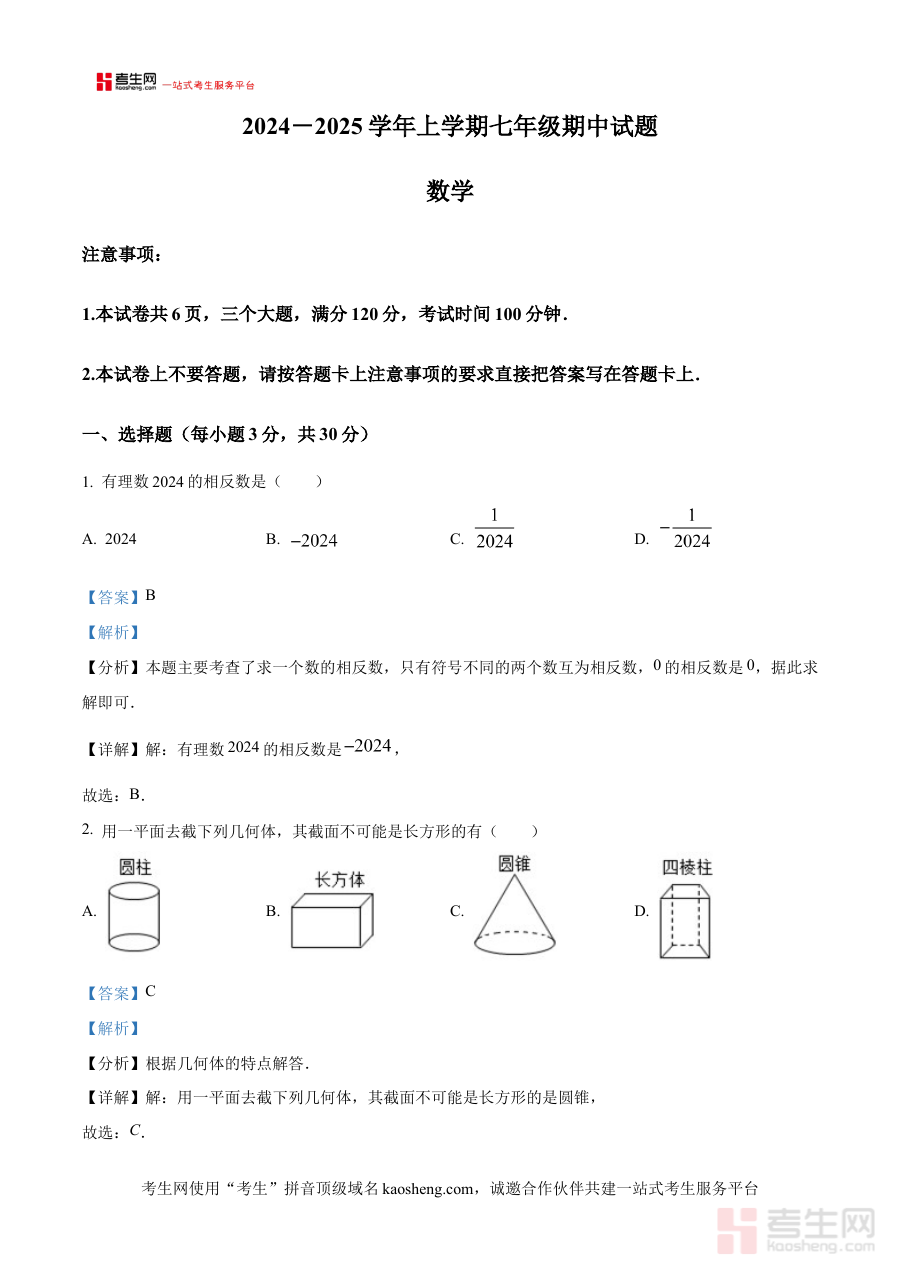 《精品解析:河南省郑州市金水区七校联考2024-2025学年七年级上学期11月期中数学试题(解析版)》是针对河南省郑州市金水区七校在2024-2025学年七年级上学期11月举行的期中数学联合考试所编制的解析类备考资料,聚焦该阶段数学学科的期中检测需求,为相关师生提供专业的试题解析支持。