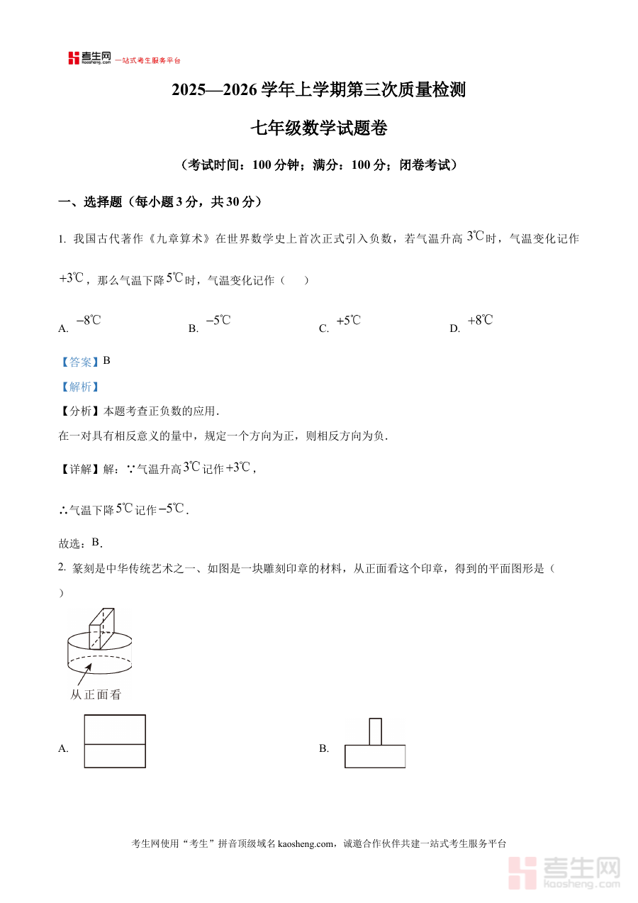 《精品解析:河南省郑州市2025-2026学年七年级上学期12月月考数学试题(解析版)》是针对河南省郑州市区域内七年级学生2025-2026学年上学期12月月考数学科目的专项备考资料,聚焦该阶段数学学习的阶段性检测需求,为学生和教师提供贴合本地教学进度与考试要求的参考依据。