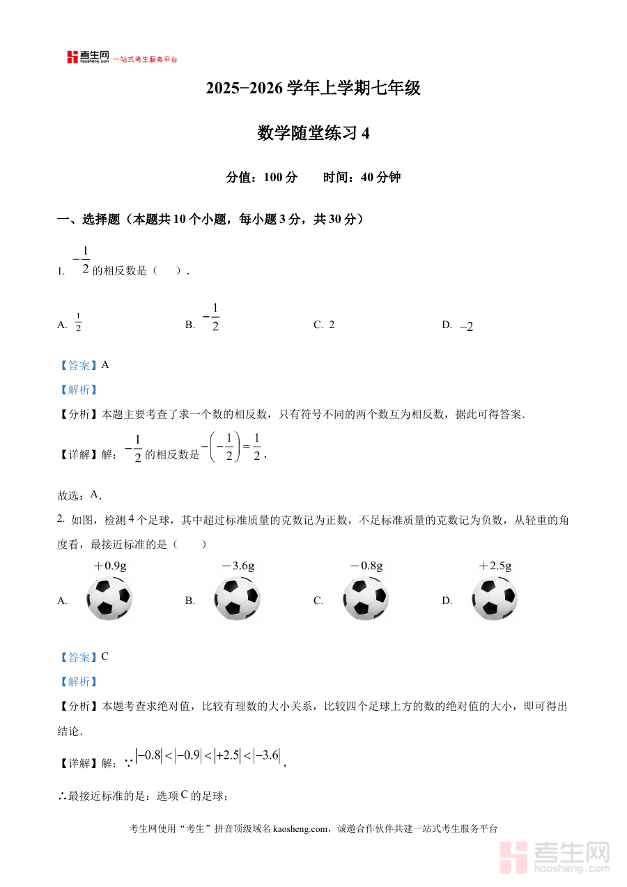 《精品解析:河南省郑州市二七区京广实验中学 2025-2026学年七年级上学期数学10月月考试题(随堂练习4)(解析版)》是针对河南省郑州市二七区京广实验中学2025-2026学年七年级上学期数学学科10月份随堂练习4月考试题的配套解析资料,精准对应该阶段的数学考试内容,为相关备考活动提供专业支持。