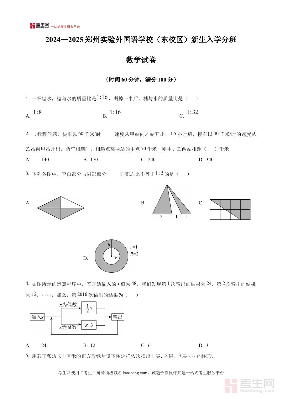 《精品解析:河南省郑州市二七区郑州实验外国语学校(东分)2025-2026学年七年级上学期开学考数学试卷(原卷版)》是针对河南省郑州市二七区郑州实验外国语学校(东分)2025-2026学年七年级上学期开学数学考试的备考资料,精准匹配该区域特定学校的开学阶段数学检测场景,为相关使用者提供贴合校情的考试内容参考。