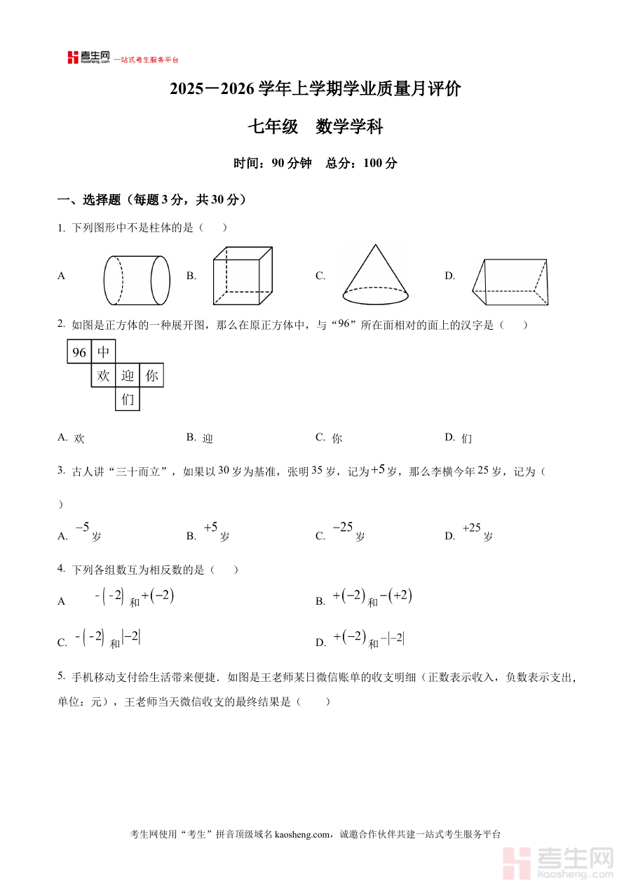 《精品解析:河南省郑州市第九十六中学2025-2026学年上学期数学月考卷(9月)(原卷版)》是针对河南省郑州市第九十六中学2025至2026学年第一学期9月数学月度考试设计的备考资料,精准匹配该学校该阶段的数学教学进度与考试要求,为师生提供贴合实际教学场景的参考依据。
