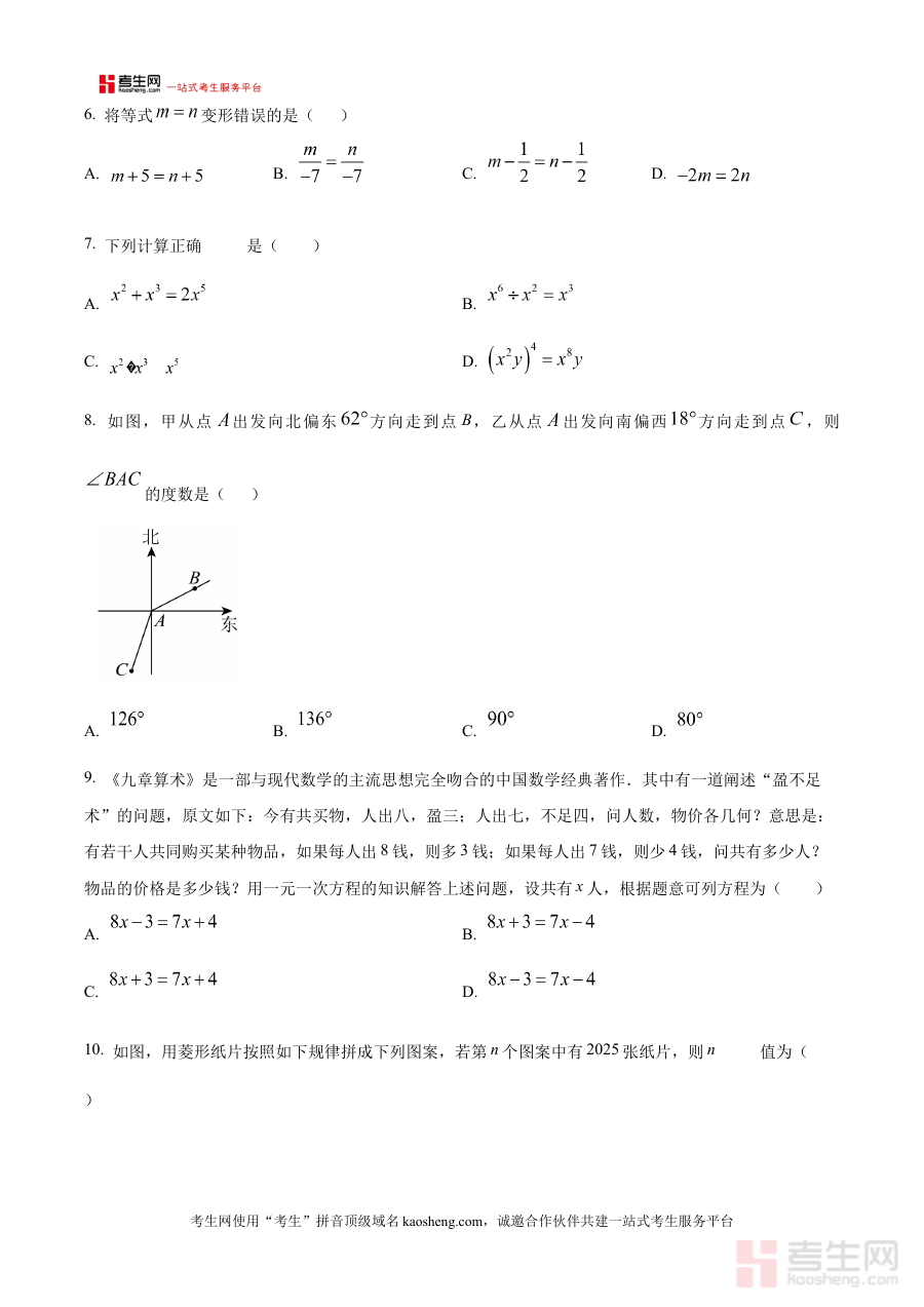 此资料的适用人群为河南省郑州市第六十四中学2025-2026学年七年级的学生及数学教师群体,学生可通过该试题进行自我检测以明确学习薄弱环节,教师则能借助其开展教学评估与针对性指导,从而提升阶段检测与备考规划的有效性和精准性。
