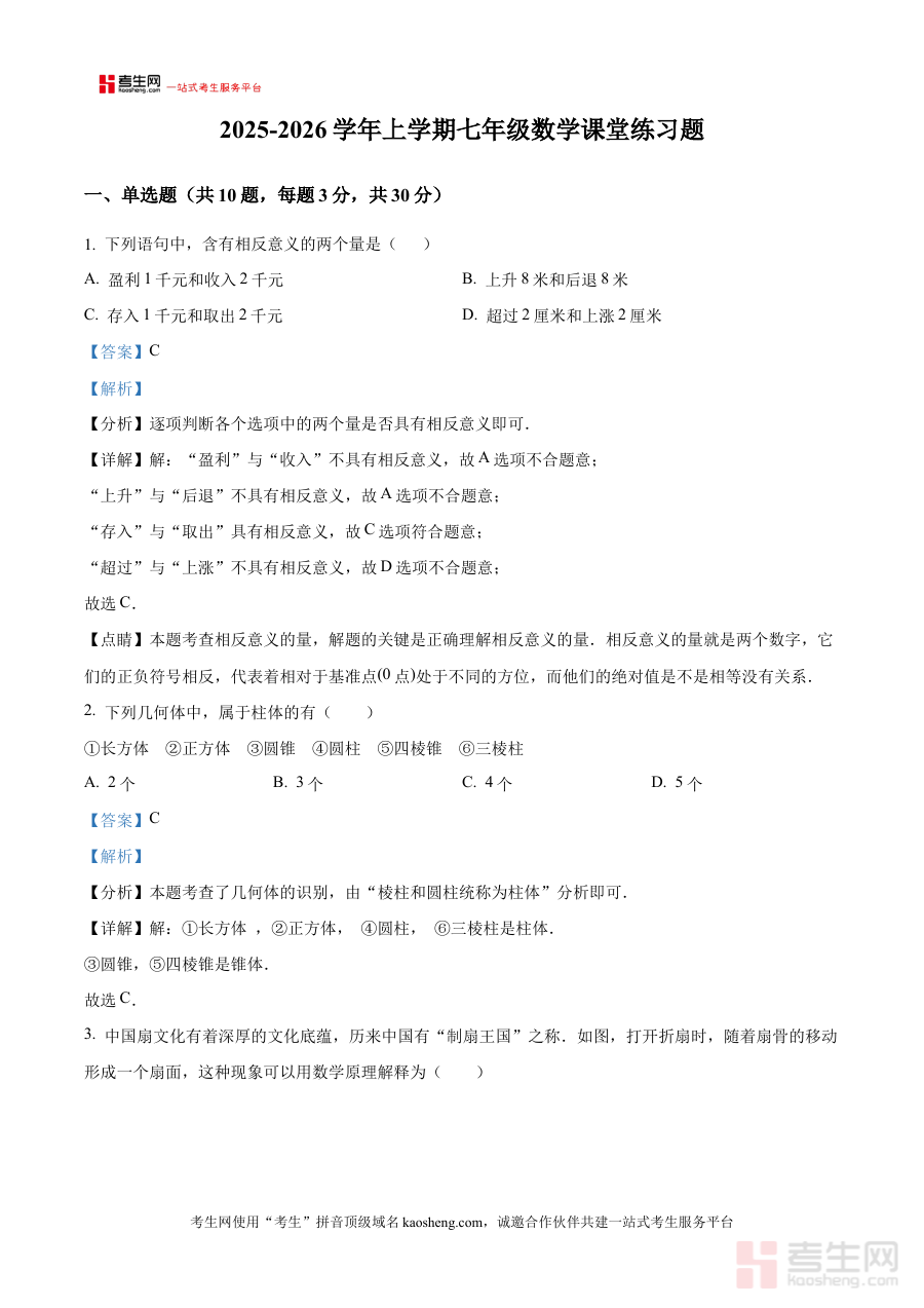 《精品解析:河南省郑州市管城回族区外国语学校2025--2026学年七年级上学期数学第一次月考 试题(解析版)》是针对2025-2026学年河南省郑州市管城回族区外国语学校七年级上学期数学第一次月考的专业备考资料,聚焦该阶段考试的核心备考需求,为使用者提供与本次考试直接相关的解析支持。