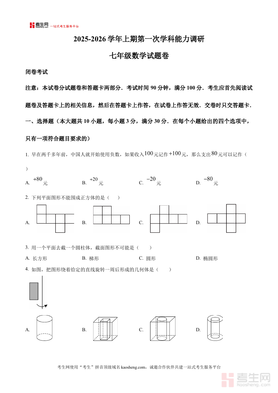 《精品解析:河南省郑州市郑州中学(八一校区)2025-2026学年上学期七年级第一次月考数学试(原卷版)》是针对河南省郑州市郑州中学八一校区特定教学阶段的数学学科备考资料,聚焦2025-2026学年上学期七年级第一次月考这一关键节点,以原卷版形式呈现考试内容框架,精准对应校区、学年、学期、年级及考试类型的核心属性,为相关使用者提供与实际考试直接匹配的内容载体。