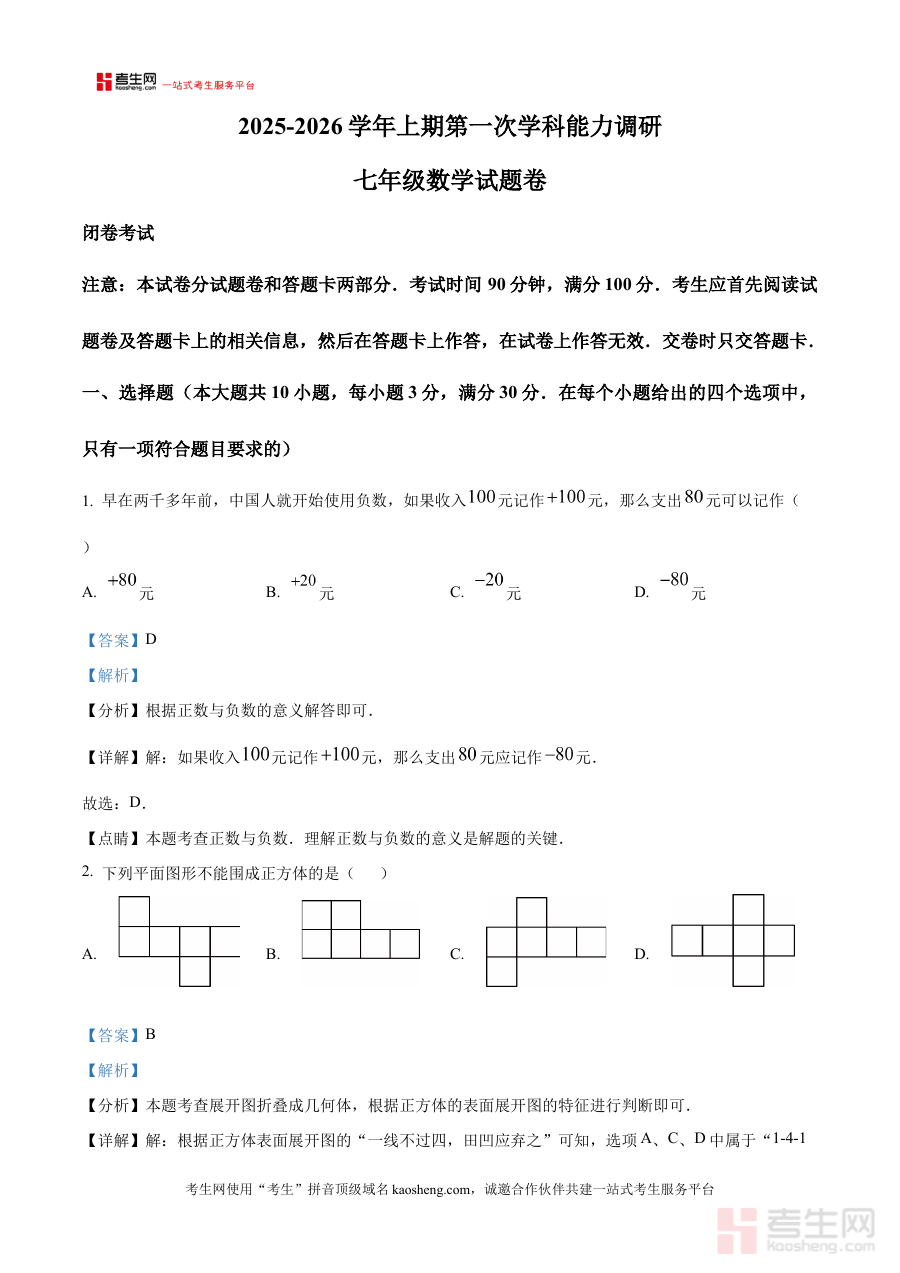 《精品解析:河南省郑州市郑州中学(八一校区)2025-2026学年上学期七年级第一次月考数学试(解析版)》是针对河南省郑州市郑州中学八一校区2025-2026学年上学期七年级学生第一次月考数学科目的备考资料,聚焦该校区特定学期的阶段性数学考试需求,为学生提供对应考试的专业解析支持。