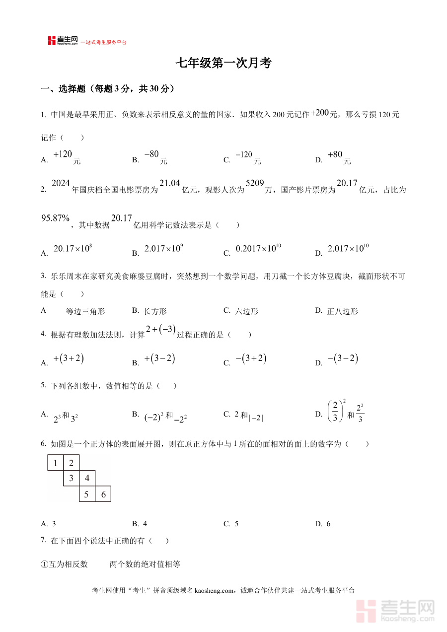 《精品解析:河南省郑州市郑州高新技术产业开发区2025-2026学年七年级上学期10月月考数学试题(原卷版)》是针对河南省郑州市郑州高新技术产业开发区2025-2026学年七年级上学期10月数学月考的备考资料,聚焦该区域特定学年段的阶段性数学考试需求,为相关师生提供贴合本地教学进度与考试要求的参考材料。