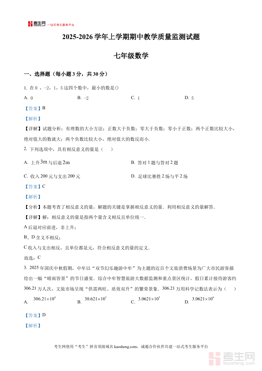 《精品解析:河南省郑州市中牟县2025-2026学年上学期七年级11月期中考试数学试题(解析版)》是针对河南省郑州市中牟县2025-2026学年上学期七年级学生11月期中考试的数学学科备考资料,聚焦该阶段的阶段性考试需求,为相关使用者提供针对性的解析支持。