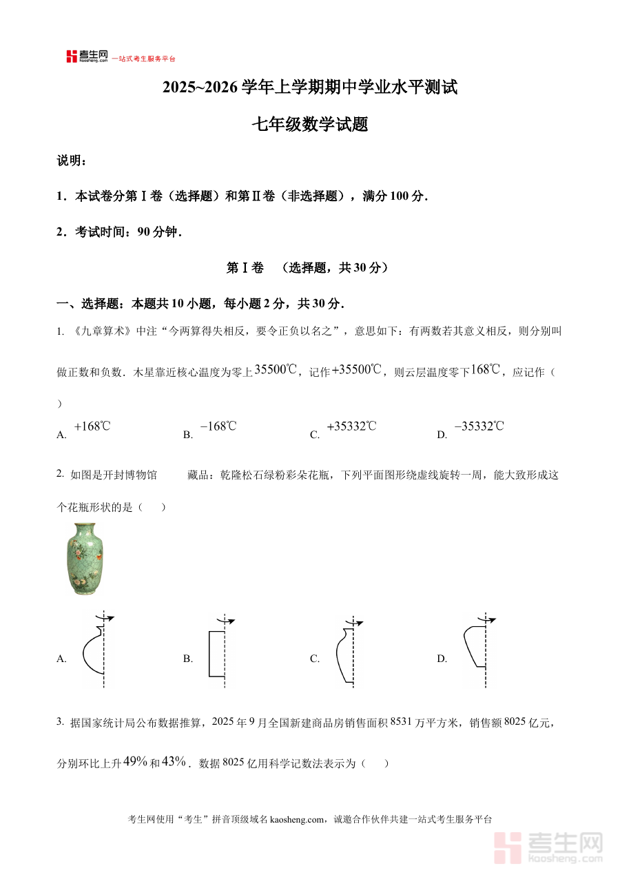 《精品解析:河南省郑州市桐柏一中2025-2026学年七年级上学期期中数学试卷(原卷版)》是针对河南省郑州市桐柏一中2025至2026学年七年级上学期期中数学考试的配套备考资料,紧密贴合该阶段数学学习进度与考试要求,为学生提供与实际考试场景一致的原卷内容参考。