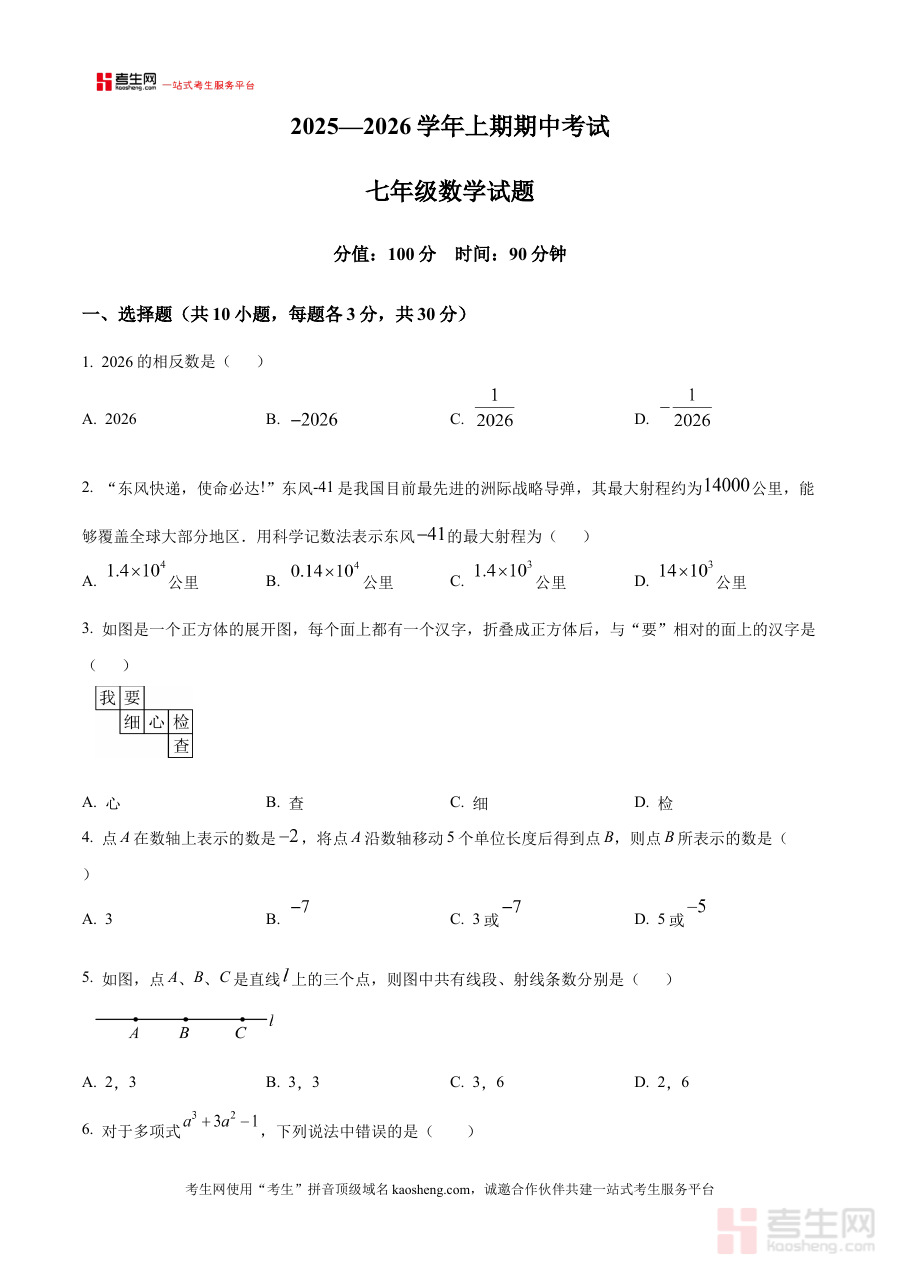 该资料适用于河南省郑州市第四初级中学2025-2026学年七年级学生及相关数学教师,对学生而言能通过原卷熟悉考试形式与要求,为期中备考奠定基础;对教师而言可作为教学参考资源,辅助开展阶段教学评估与备考指导,具有较强的实践应用价值。