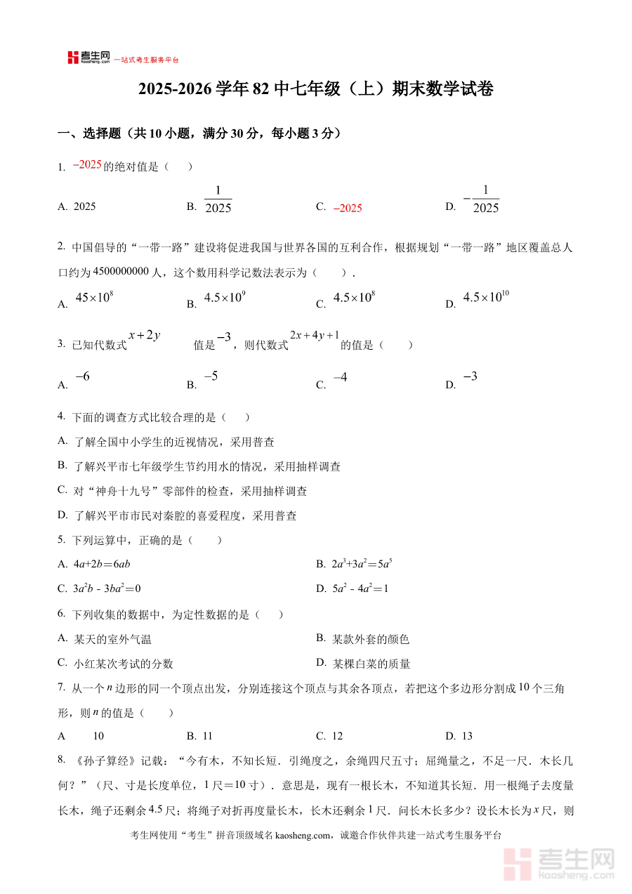 《精品解析:河南省郑州市第八十二中学2025-2026学年上学期七年级期末数学试卷(原卷版)》是针对河南省郑州市第八十二中学2025-2026学年上学期七年级期末数学考试设计的备考资料,准确对应该学年该学期的期末检测场景,为相关使用者提供贴合本地校考实际的资源支持。