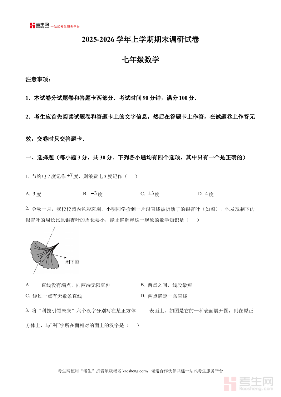 本资料适用于河南省郑州市郑中国际学校2025-2026学年七年级学生、数学教师及学生家长。对于学生,它能模拟期末考场景提升应试能力;对于教师,可作为期末复习的辅助资源优化教学安排;对于家长,能直观了解孩子的学习进展,助力家校协同备考。