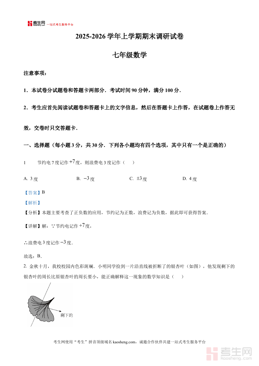 《精品解析:河南省郑州市郑中国际学校2025-2026学年七年级上学期期末数学试卷(解析版)》是针对河南省郑州市郑中国际学校2025-2026学年七年级上学期期末数学考试的专项备考资料,精准匹配该阶段数学学科期末检测的需求,为使用者提供与考试直接关联的解析支持。