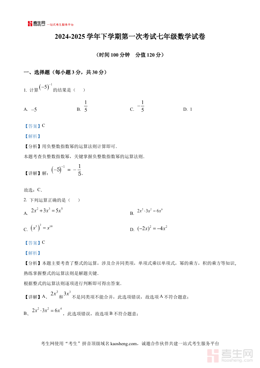 《精品解析:河南郑州市第二中学2024-2025学年七年级下学期数学第一次月考试卷(解析版)》是针对河南郑州市第二中学2024-2025学年七年级下学期数学学科第一次月考的备考资料,聚焦该阶段数学学科的阶段性学习成果检测需求,为相关师生提供具有针对性的解析内容。