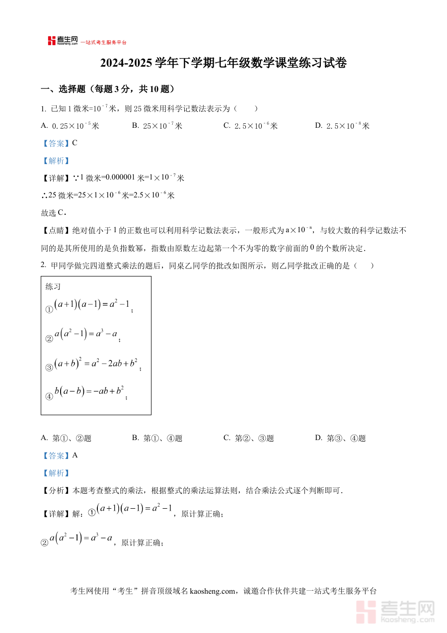 本资料适用于河南省郑州市管城回族区2024-2025学年七年级学生、数学教师及相关教育工作者,其解析内容有助于学生掌握月考题型的应对方法,教师可借助其进行教学反馈与指导,共同提升阶段检测的准备效率与学习质量。
