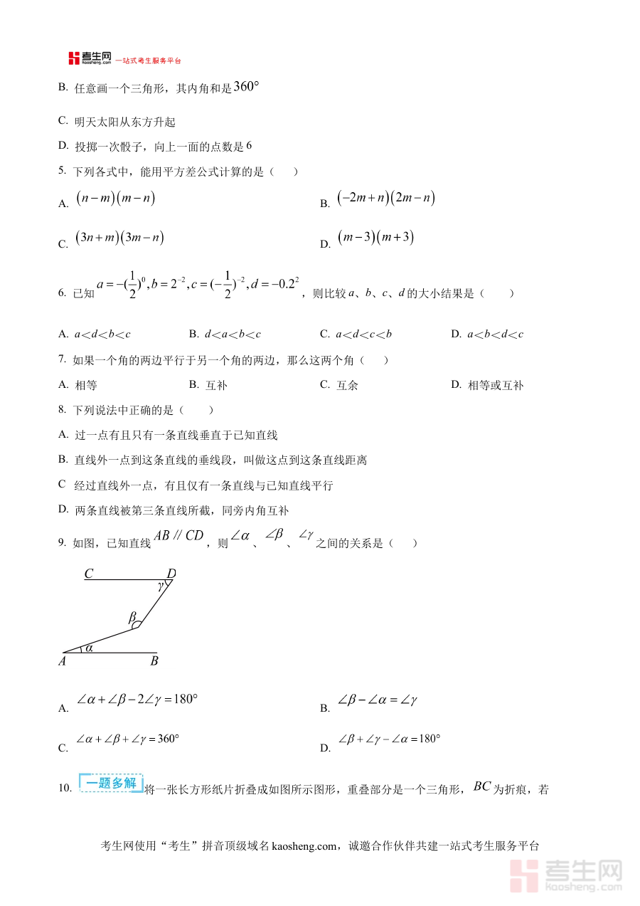 该资料可用于七年级学生对自身数学学习状况进行阶段性诊断,帮助教师掌握学生在学期初期的知识掌握程度,同时为后续教学调整与备考规划提供依据,助力师生明确阶段学习重点与方向。