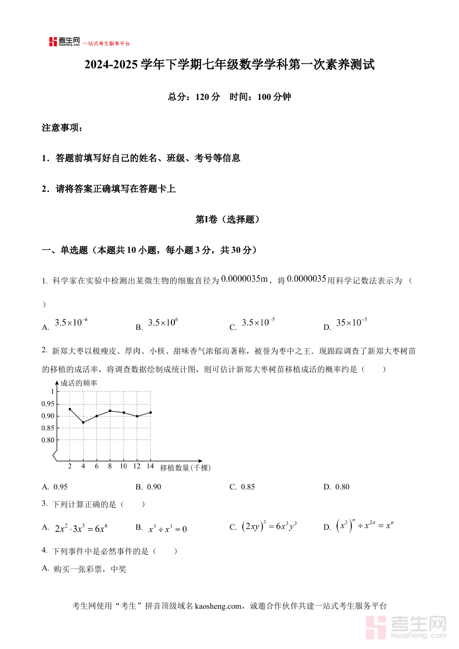 《精品解析:河南省郑州市经济开发区2024-2025学年下学期第一次月考七年级数学试题(原卷版)》是针对河南省郑州市经济开发区2024至2025学年下学期七年级数学第一次月考的配套备考资料,聚焦该区域特定学年阶段的数学学科阶段性考试需求,为相关师生提供贴合本地教学进度与考试要求的参考资源。