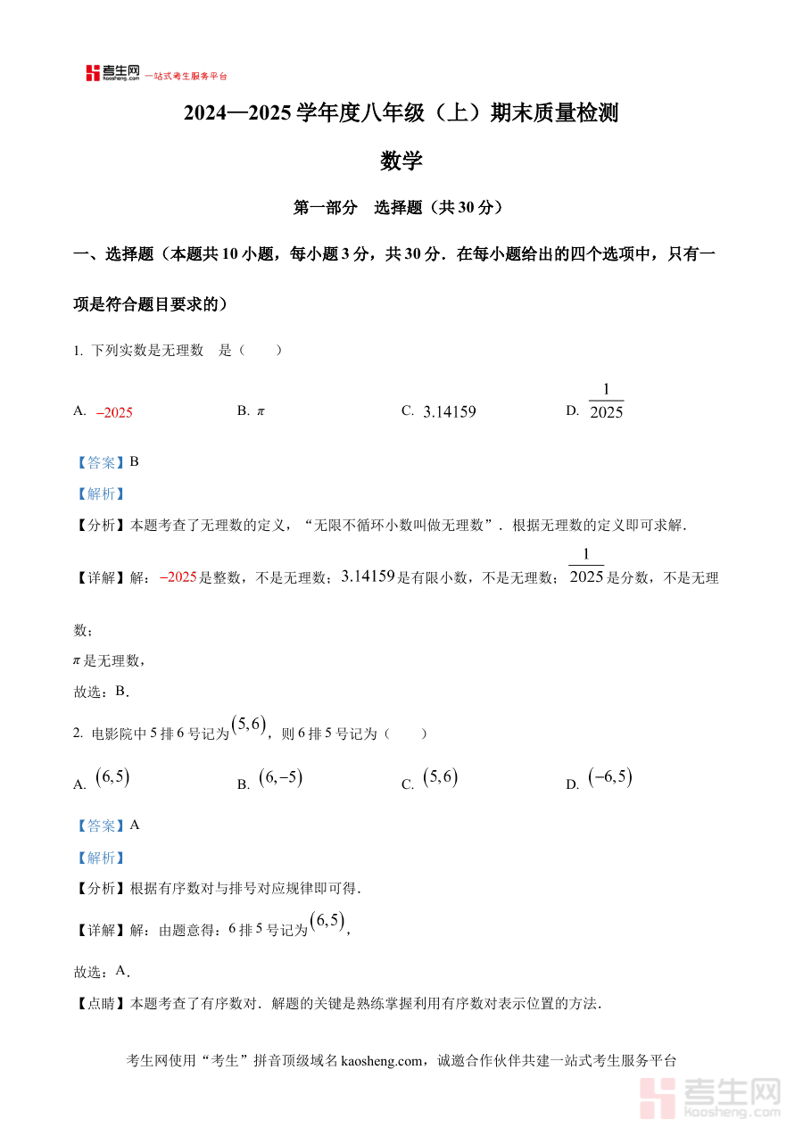 此资料主要适用于辽宁省沈阳市皇姑区2024-2025学年八年级的学生及数学教师群体。对于学生而言,它是期末备考的重要辅助工具,能助力其巩固所学知识、提升解题能力;对于教师而言,可作为教学评估与备考指导的参考依据,帮助教师更精准地制定教学策略与复习计划,促进教学效果的提升。