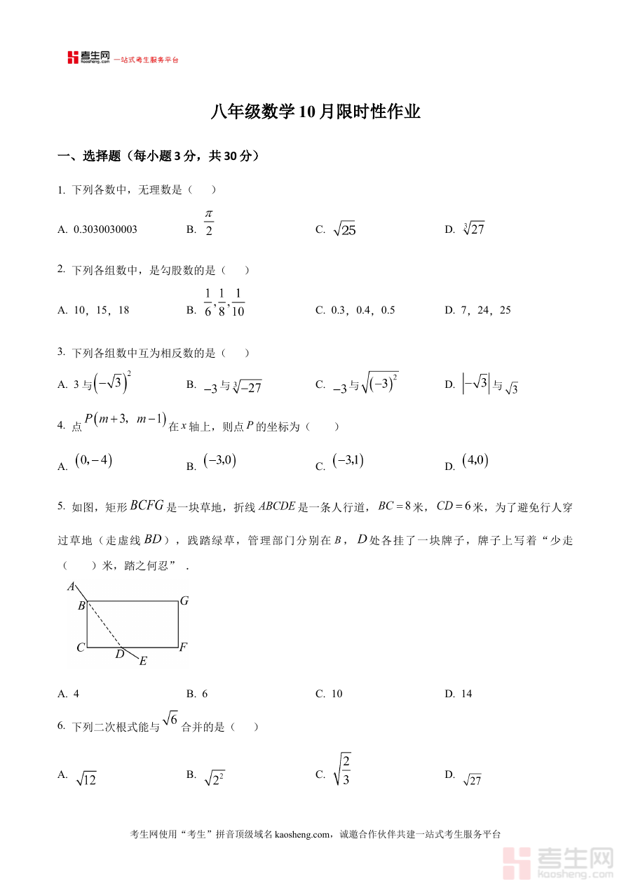 本资料主要适用于辽宁省沈阳市南昌中学2025-2026学年八年级的学生,以及承担该学段数学教学任务的教师。对于学生而言,通过使用原卷版试卷进行模拟练习,可提前熟悉本校月考的考试形式与考查逻辑,提升应试状态与时间管理能力;对于教师,则可借助该试卷深入把握本校阶段性考试的命题特点,优化教学内容设计与备考规划方案,从而更高效地支持学生实现阶段性学习质量的提升。