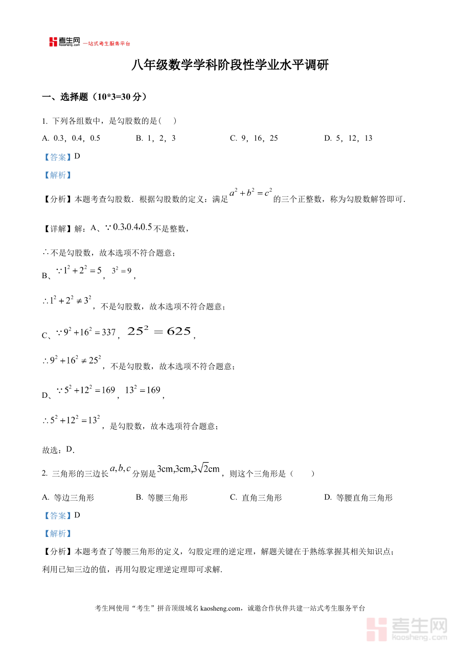 《精品解析:辽宁省沈阳市培英中学2025-2026学年八年级上学期阶段性学业水平调研数学试卷(解析版)》是针对辽宁省沈阳市培英中学2025-2026学年八年级上学期阶段性学业水平调研数学考试的配套备考资料,聚焦该阶段数学学科的阶段性学业检测需求,为使用者提供与本次调研考试直接相关的解析支持。