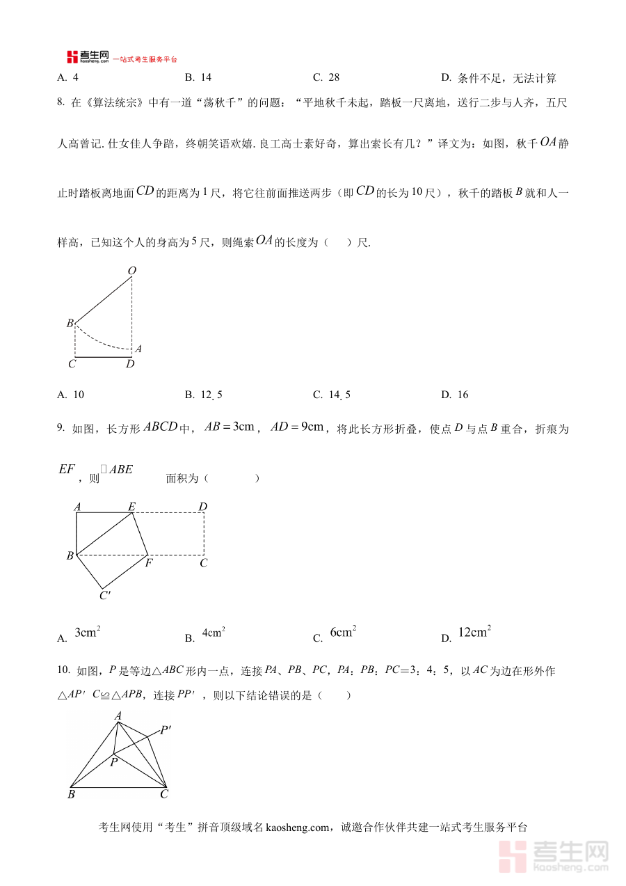 本资料适用于沈阳市第一二七中学2025-2026学年八年级学生,通过使用该原卷版试题进行练习,学生能够提前熟悉开学考的考查模式,有效提升备考效率,为新学期数学学习奠定良好基础;同时也可为教师提供参考素材,辅助制定开学后的教学策略与辅导计划。