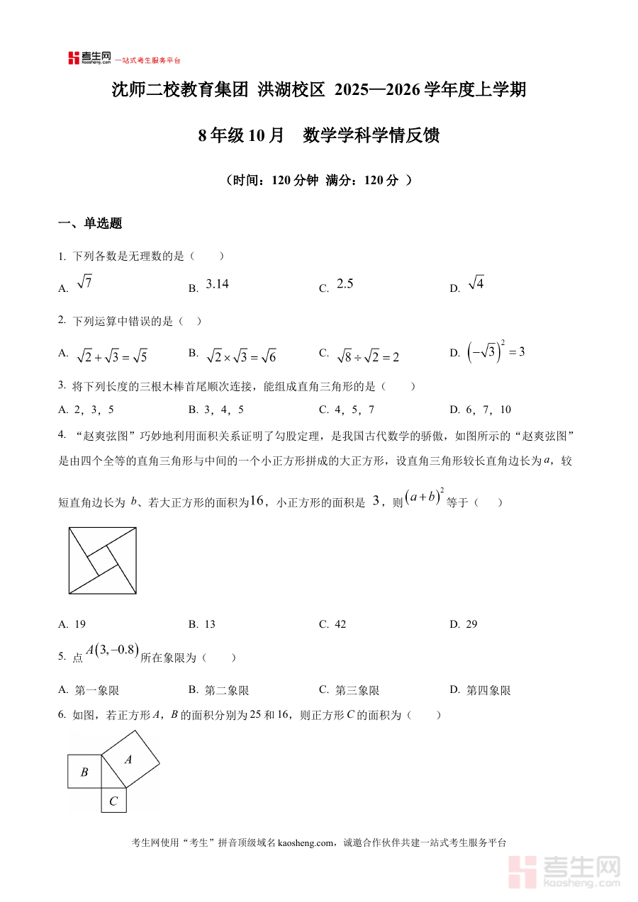 《精品解析:辽宁省沈阳师范大学附属第二中学教育集团2025--2026学年八年级上学期10月月考数学卷(原卷版)》是面向辽宁省沈阳地区2025-2026学年八年级上学期10月月考的数学学科备考资料,依托沈阳师范大学附属第二中学教育集团的阶段性考试体系,为学生提供贴合本地校际联考要求的练习载体。