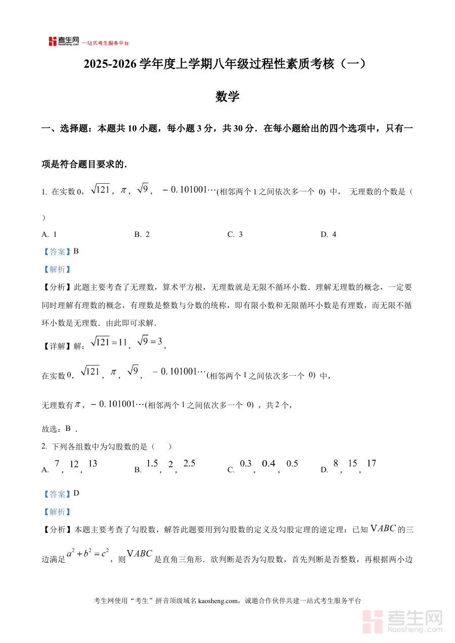 本资料主要适用于辽宁省沈阳铁西杏坛中学2025-2026学年上学期八年级的学生,也可作为教师进行教学评估与指导的参考材料,其阶段检测与备考规划的价值有助于使用者更好地适应校内月考节奏,提升数学学科的学习效果。