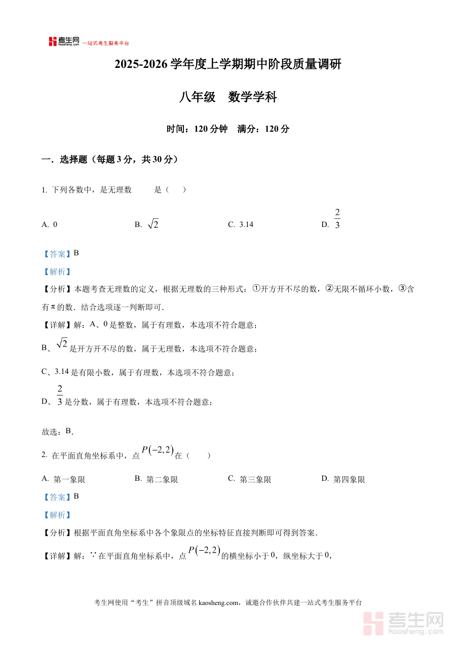 《精品解析:辽宁省沈阳市第七中学2025-2026学年八年级上学期期中数学试题(解析版)》是针对2025-2026学年辽宁省沈阳市地区八年级上学期期中数学考试的专业备考资料,精准匹配该阶段考试时间与区域教学要求,为使用者提供贴合本地学情的复习支持。
