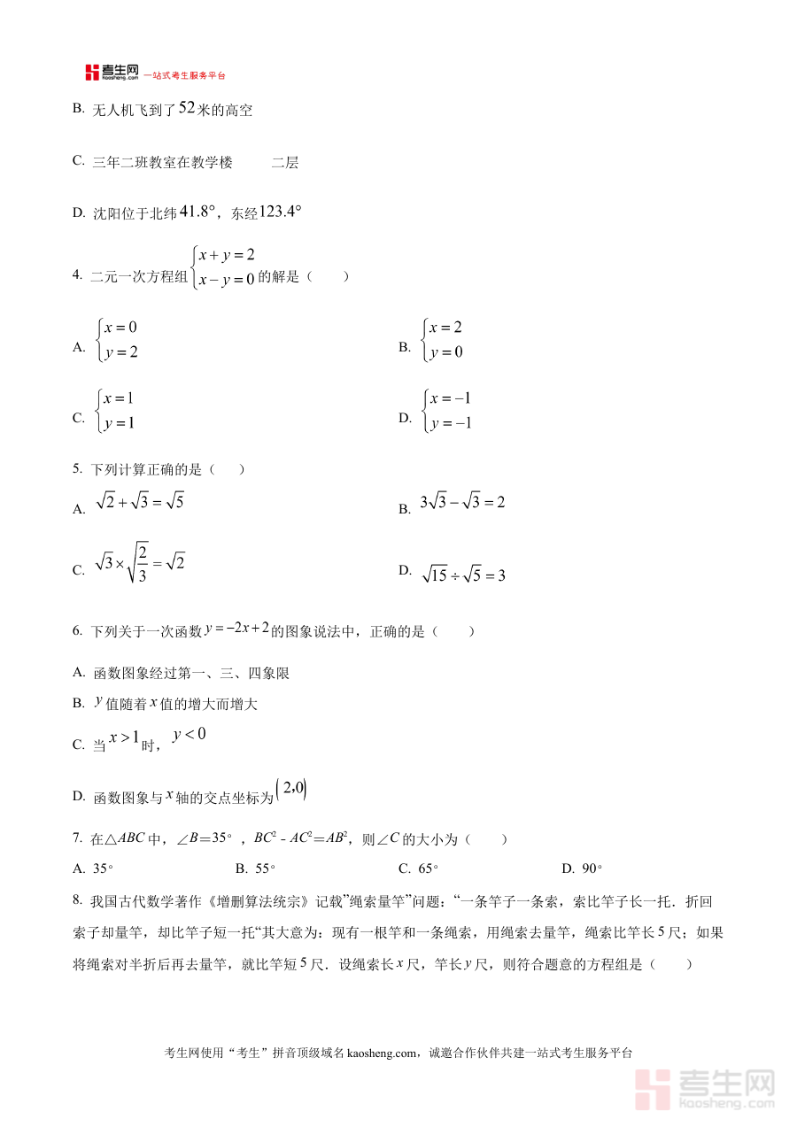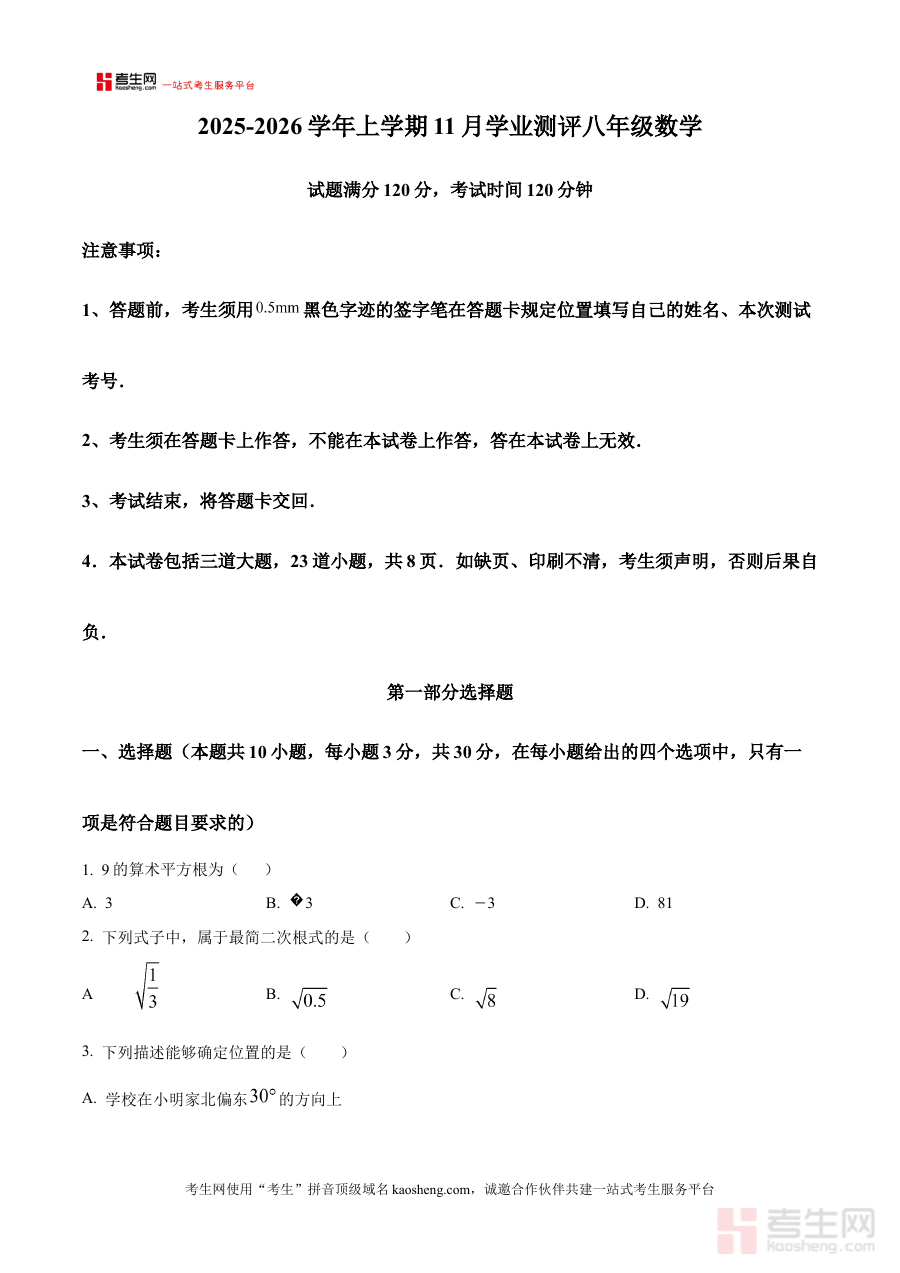 本资料适用于辽宁省沈阳市浑南区2025-2026学年八年级的学生及数学教师,对于学生而言,通过原卷练习可提前熟悉期中考试的形式与节奏;对于教师而言,可借助该资料进行教学效果评估与备考指导,助力提升阶段学习与教学的针对性和有效性。
